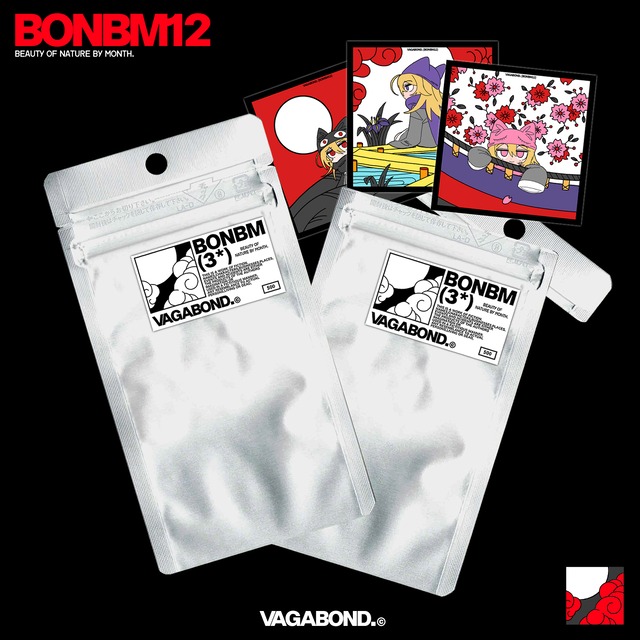 BONBM12 (Beauty of nature by month) 花札の札柄を模したステッカー全12種が3枚セットになったpackです。絵柄はランダムになります。 稀におまけが付いてきます。 This pack is a set of three stickers of all 12 kinds imitating a hanafuda. The designs will be random. 【詳細】 ・stickers ×3 size:55×55(mm)