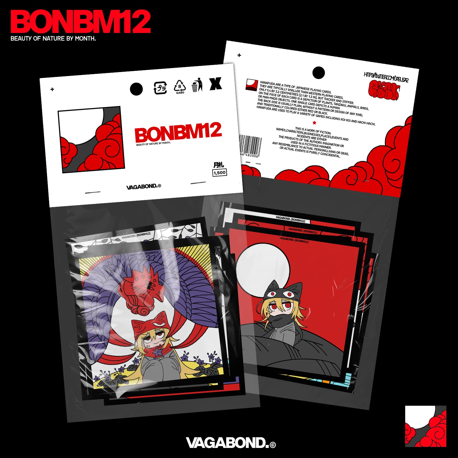 花札の札柄を模したステッカー全12種が全種類セットになったpackです。